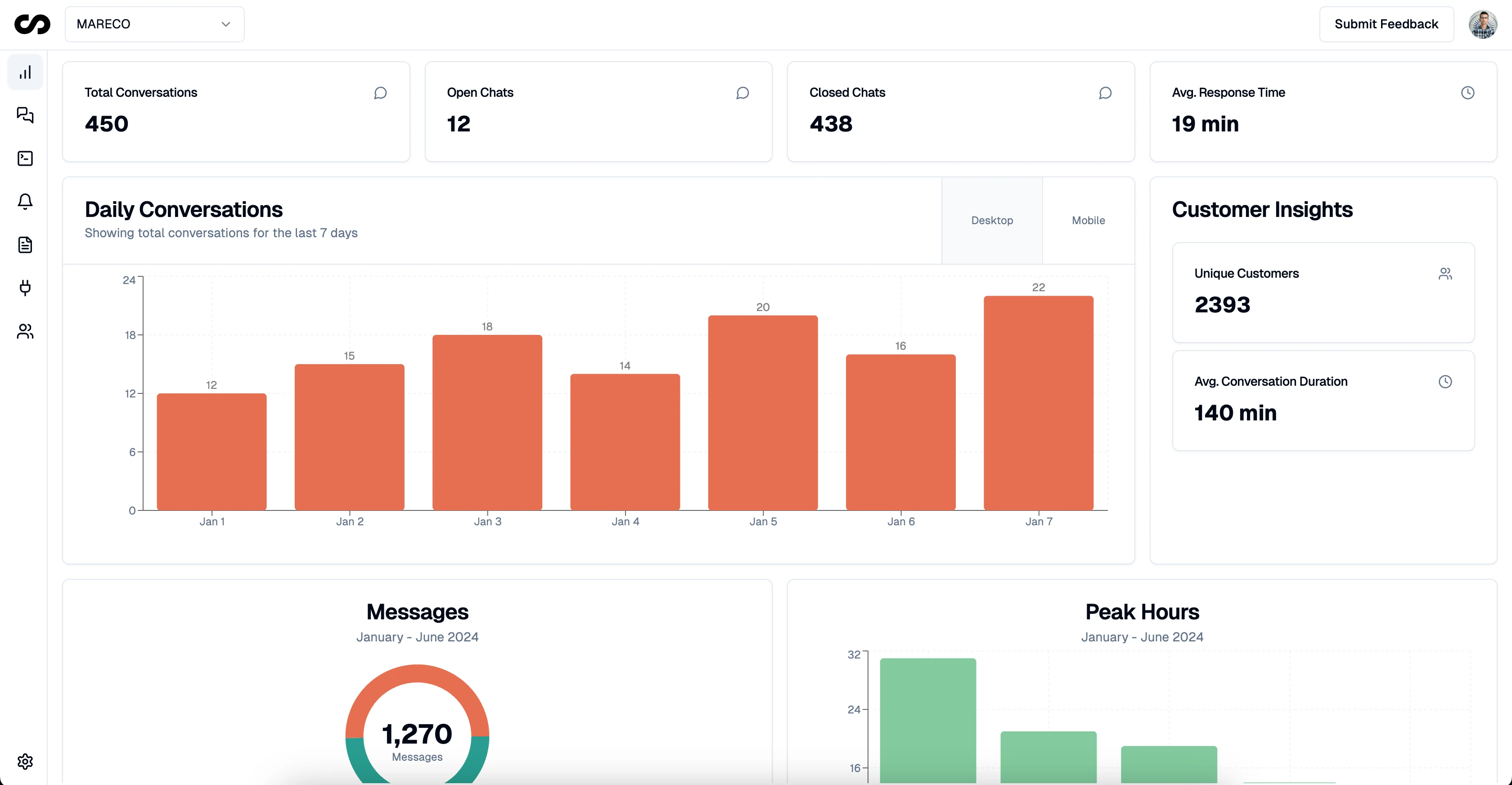 Manage all customer conversations from one unified inbox. Assign chats, track performance, and collaborate seamlessly with your team.